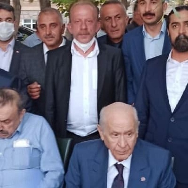 Sultan Şeyhmuz Ez-Zuli Derneği Başkan Yardımcısı M. Yasin Aslan MHP Genel Başkanı Devlet Bahçeli ile görüşmesi sonrası hatıra fotoğrafı çekimi